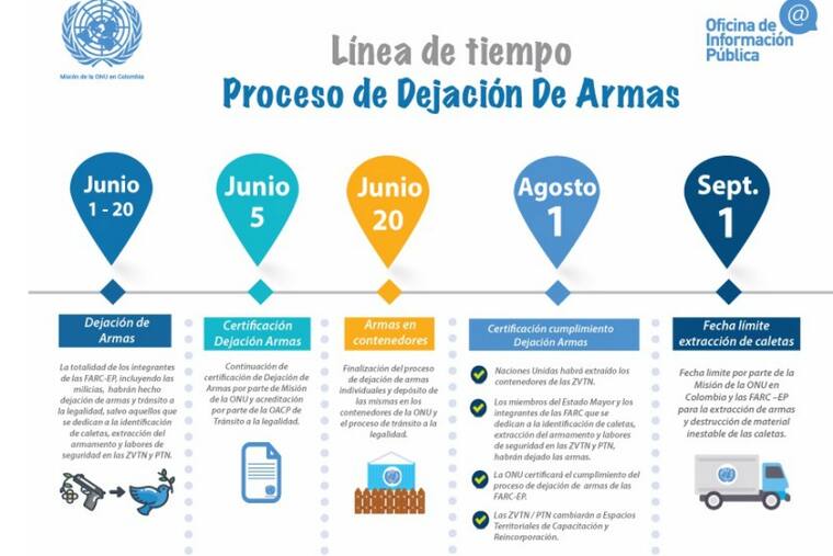 Así las cosas, y tras la prórroga de 20 días en la dejación de armas -y de 60 en la vigencia de las Zonas Veredales-, los plazos quedaron así: