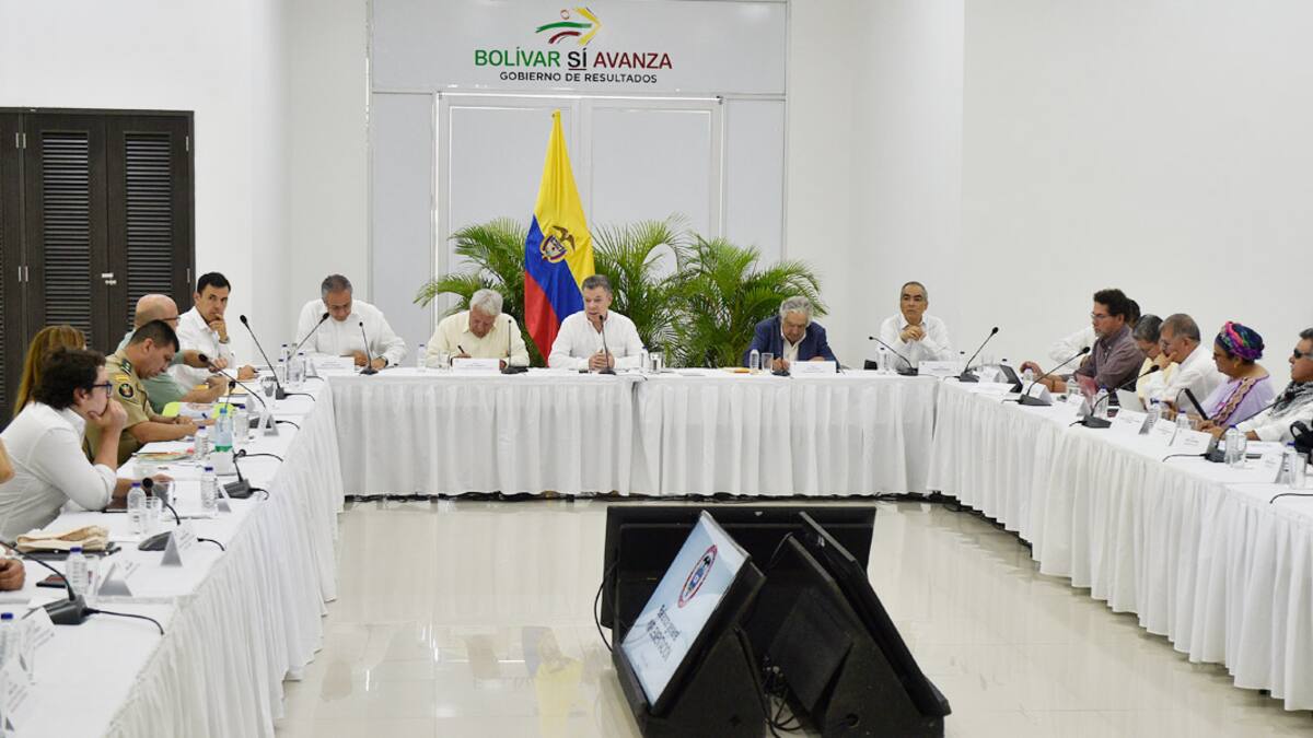 Este jueves se llevó a cabo en Turbaco (Bolívar) la reunión de la Comisión de Verificación y Seguimiento a la implementación de los Acuerdos de Paz, en la que las tres partes que la conforman (el Gobierno, la Farc y el componente internacional, representado en los expresidente Pepe Mujica (Uruguay) y Felipe González (España)) evaluaron lo que ha sido dicho proceso tras un año de la firma del pacto.