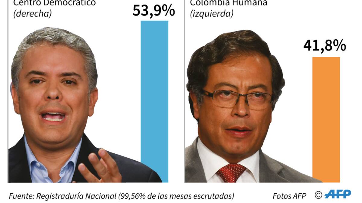 Con 97.663 mesas reportadas y 10.332.662 de votos, este abogado bogotano, de 41 años venció en segunda vuelta a Gustavo Petro, del movimiento Colombia Humana, quien de acuerdo con el boletín #13 de la Regstraduría, sumaba 8.011.704 votos (41,72%).