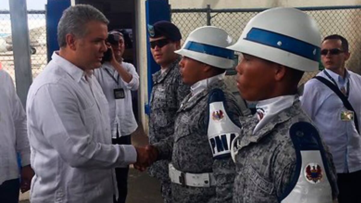 Duque se encuentra acompañado de varios de sus ministros como el titular de la cartera de Defensa, Guillermo Botero, con quien asiste al primer consejo de seguridad de su administración que se cumple en la Base Naval TC Benjamín Méndez.