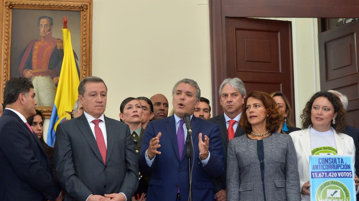'Hoy se demuestra que cuando el país se une en torno a propósitos comunes, se construyen soluciones. Nosotros, los que estamos hoy aquí presentes, estamos comprometidos con derrotar el cáncer de la corrupción. La corrupción ha sido un flagelo que ha golpeado a Colombia en todos los niveles', dijo el presidente al radicar los proyectos.