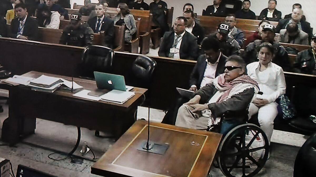 Santrich, quien estuvo tranquilo y sonriente durante la audiencia, llegó al Complejo Judicial de Paloquemao fuertemente escoltado y en silla de ruedas.