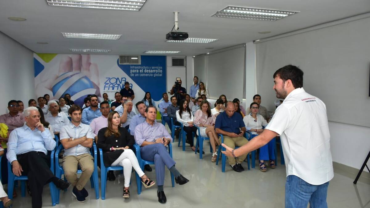 El candidato a la Alcaldía de Barranquilla Jaime Pumarejo estuvo visitando este jueves la Zona Franca, donde tuvo una charla con industriales y empresarios con el fin de intercambair ideas encaminadas a tres de sus apuestas: puertos, bilingüismo y formación. El aspirante destacó la generación de más de 400 empleos formales en la Zona Franca.