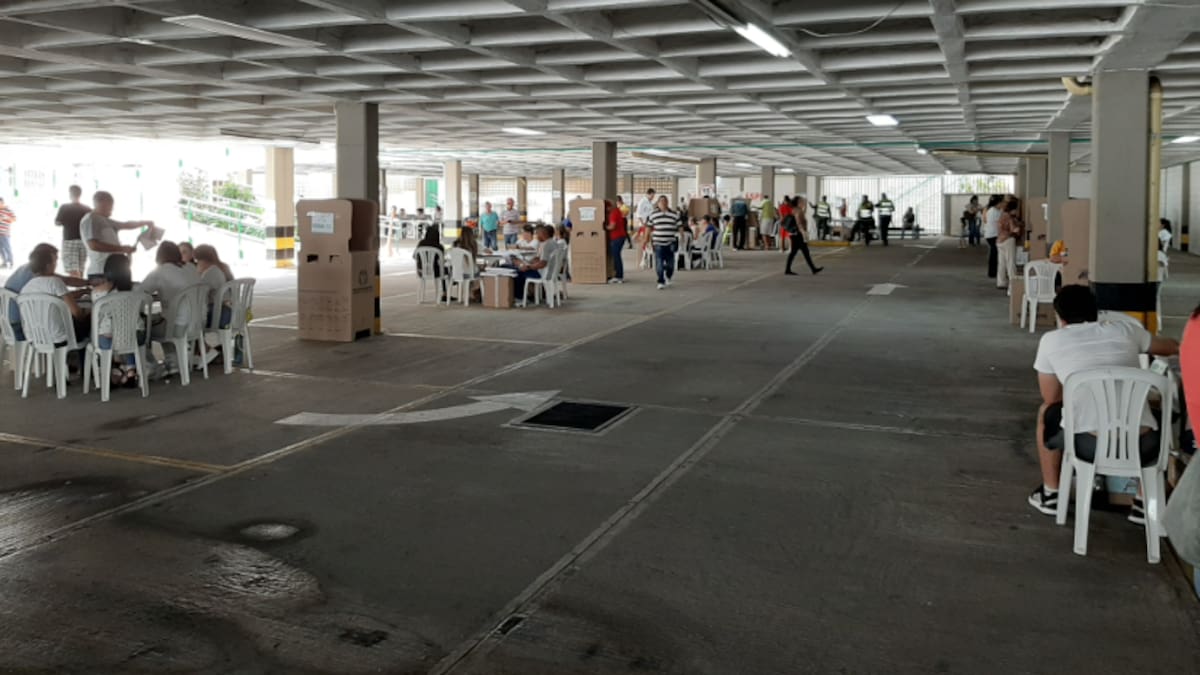 En el colegio Buen Consejo el tráfico se siente afuera de sus instalaciones. Adentro del recinto hay más funcionarios de la Registraduría, la Defensoría del Pueblo, testigos electorales, policías y jurados, que votantes. Solo unos pocos ocupan los cubículos, votan rápido y se van.
