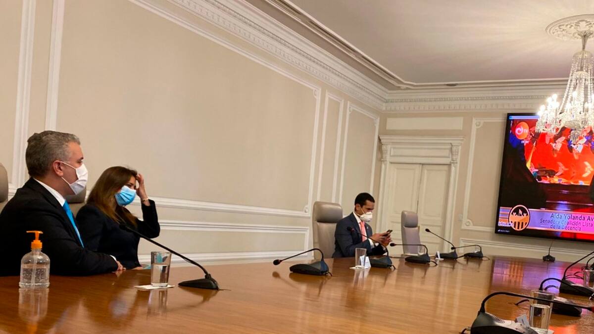 Sin embargo, el mandatario seguía escuchando desde la Casa de Nariño, rodeado de varios ministros.