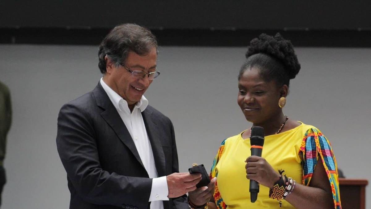 Por su parte, Gustavo Petro resaltó que el bolígrafo que le entregaron representa 'el saber y el conocimiento de la vida y paz'.