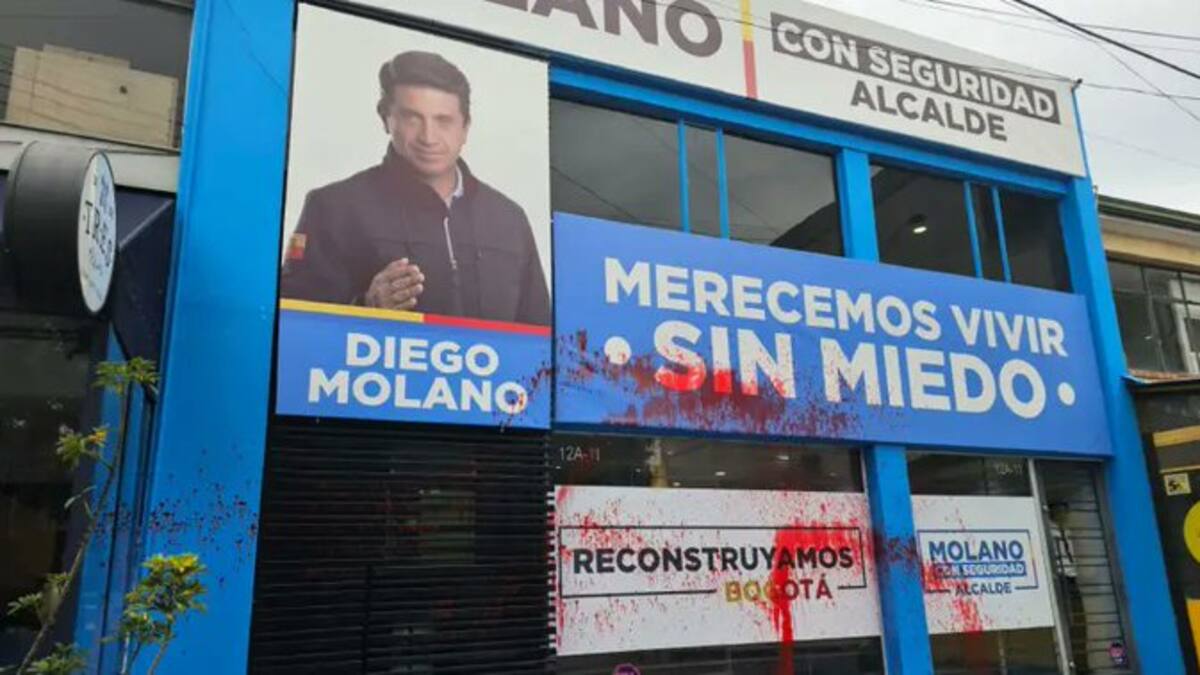 El exministro de Defensa y candidato a la Alcaldía de Bogotá Diego Molano denunció este sábado un ataque a su sede de campaña, que amaneció con pintura roja en sus paredes 'simulando sangre sobre toda la fachada', informó su campaña.