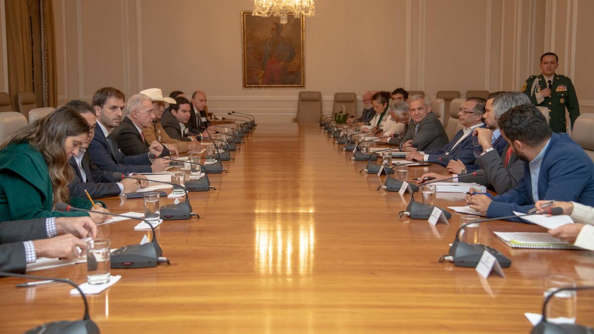 BOGOTÁ. Alrededor de las 5 de la tarde, hora prevista para el 'tinto' entre el presidente Gustavo Petro y el expresidente Álvaro Uribe, líder de la oposición, empezaron a llegar este miércoles a la Casa de Nariño los congresistas invitados del Centro Democrático y el Pacto Histórico.
