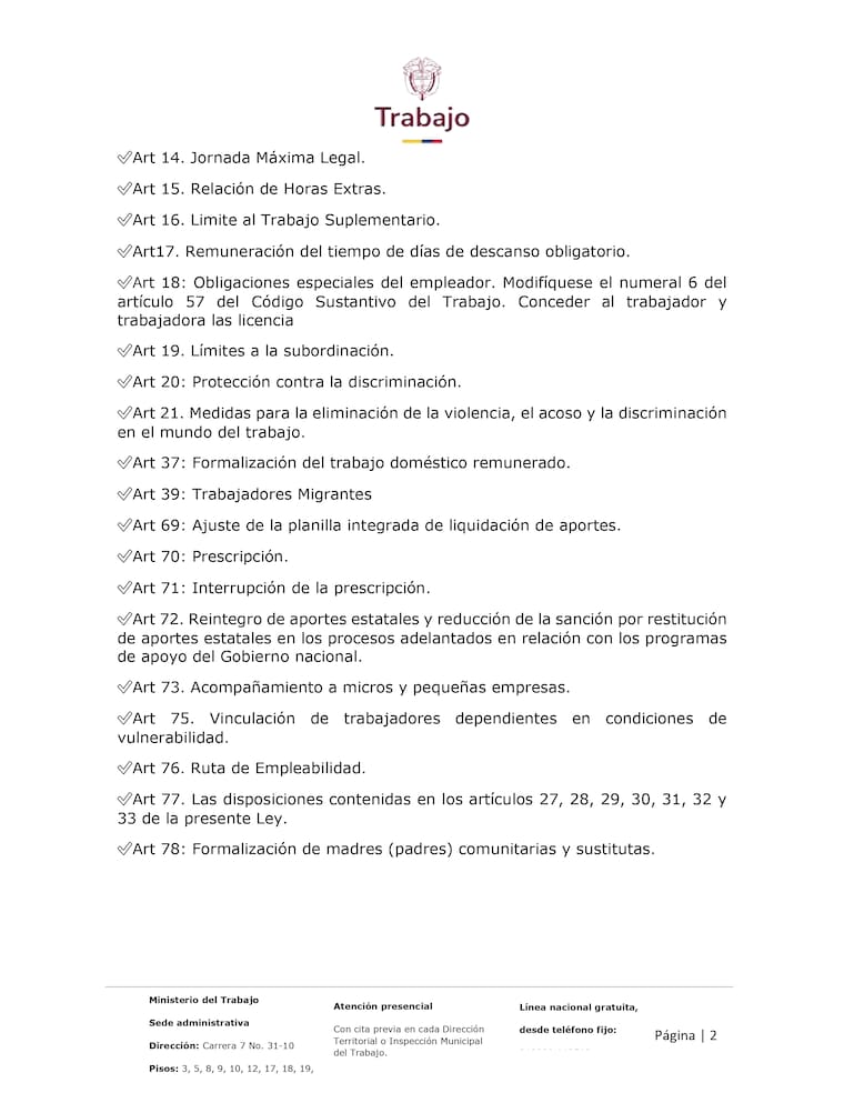 Además de las medidas de protección, otros artículos de la reforma incluyen disposiciones sobre la jornada máxima legal, la regulación de las horas extras, y límites al trabajo suplementario. Con estos cambios se busca, principalmente, garantizar un mejor equilibrio entre la vida laboral y personal de los trabajadores, al tiempo que aseguran una remuneración justa por el tiempo trabajado.