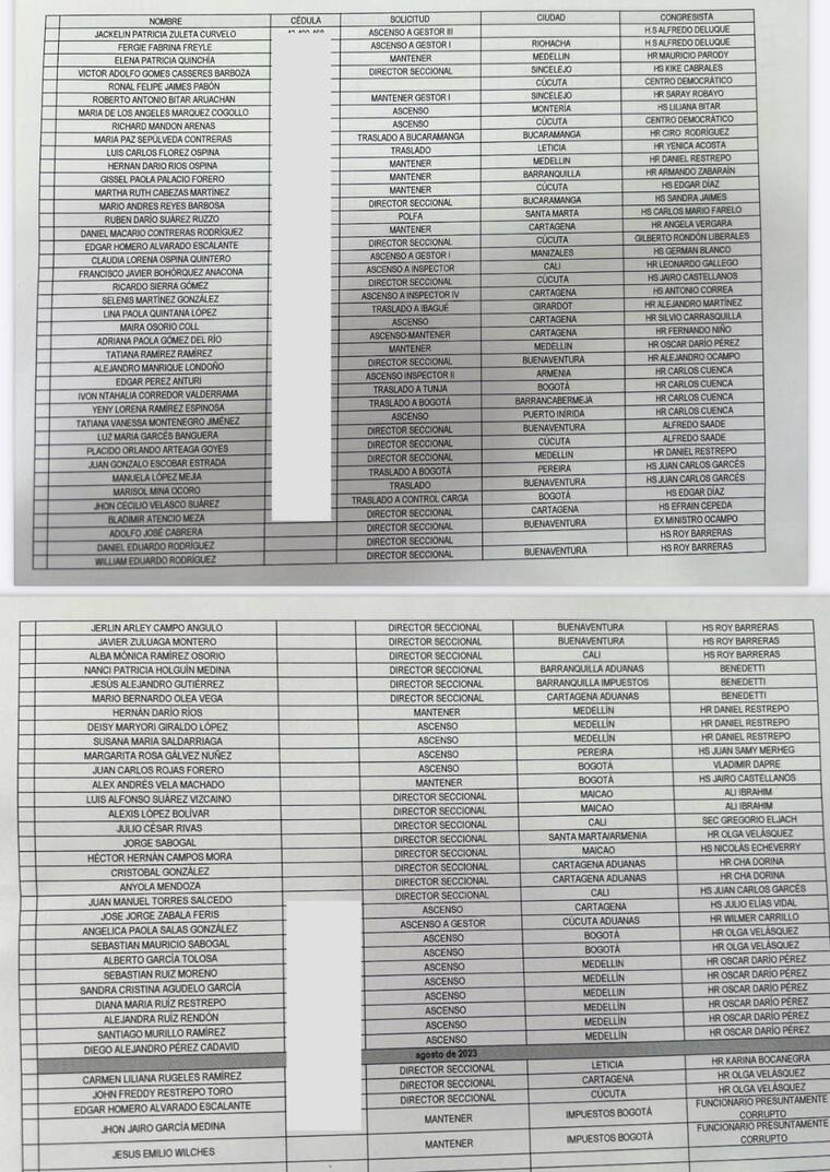 No todos pidieron nombramientos, sino que también hubo solicitud para que otorgaran ascensos o mantuvieran en el cargo a algunos funcionarios de la Dian.
