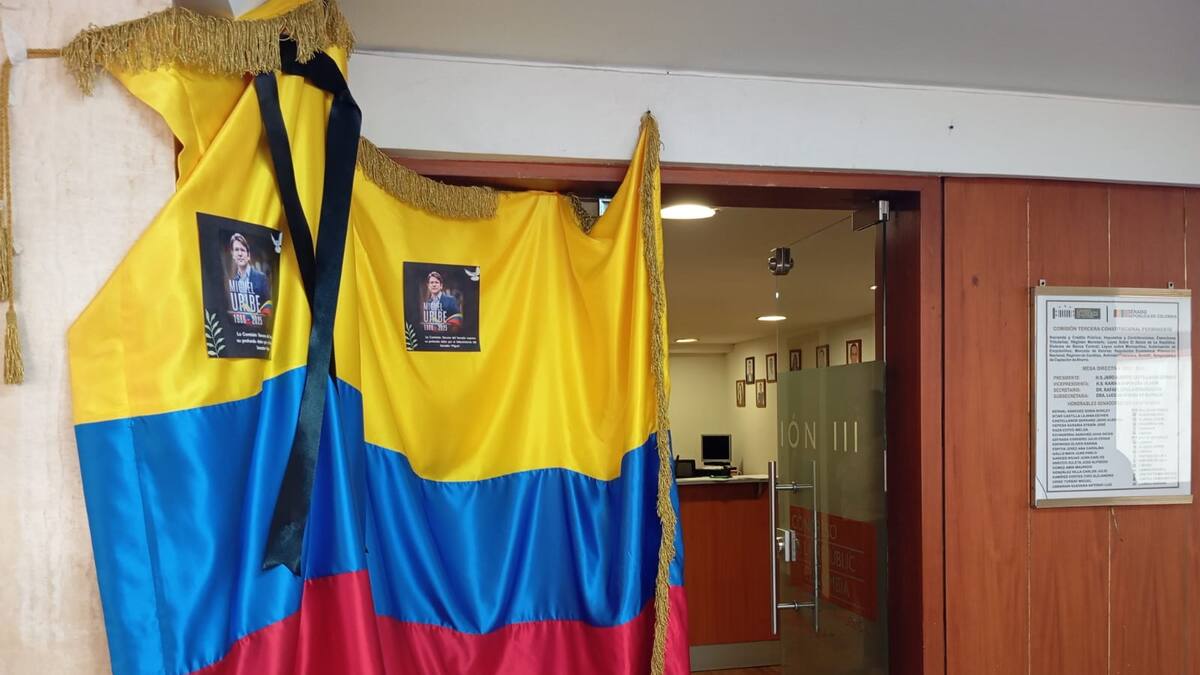 Esto luego de que el Congreso de la República acogiera desde este lunes la velación en cámara ardiente del senador y precandidato presidencial Miguel Uribe Turbay, fallecido hoy lunes a la 1:56 de la mañana en la Fundación Santa Fe de Bogotá tras el atentado perpetrado en su contra el pasado 7 de junio al occidente de la capital. Uribe Turbay también pertenecía a la Comisión Tercera del Senado.