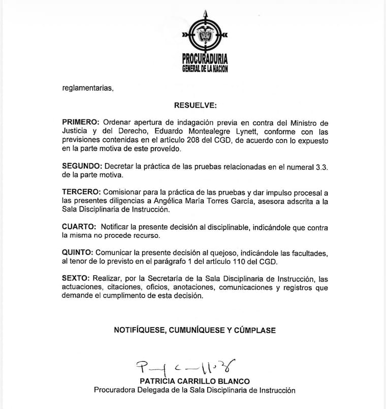 Luego de que el expresidente Álvaro Uribe presentara una denuncia ante la Procuraduría en contra del ministro de Justicia Eduardo Montealegre, por “promover mensajes de odio”, el Ministerio Público abrió una indagación preliminar en contra del funcionario del Gobierno de Gustavo Petro.