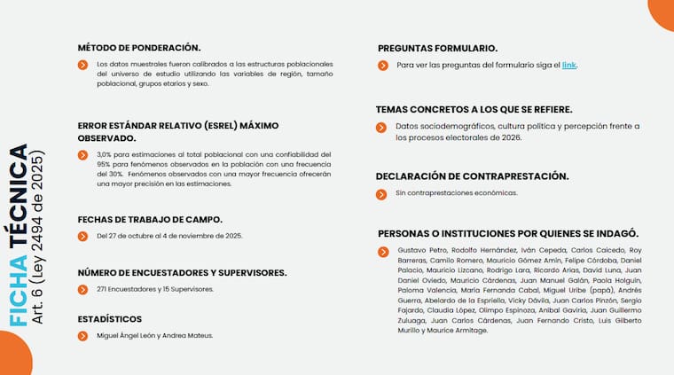 Entre tanto, entre los candidatos con mayor favorabilidad están Vicky Dávila (51 % de imagen desfavorable), seguida por Claudia López (47 %) y María Fernanda Cabal (45 %). Y completan el top cinco de mayor desfavorabilidad Miguel Uribe (40 %) e Iván Cepeda (39 %).