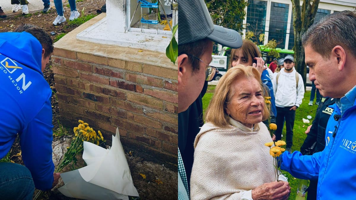 El precandidato presidencial Juan Carlos Pinzón rindió este fin de semana un homenaje al inmolado líder político del Centro Democrático, Miguel Uribe Turbay, con una ofrenda de flores y una oración en silencio, desde el Parque El Golfito, al occidente de Bogotá, lugar donde fue perpetrado el magnicidio contra el entonces también precandidato presidencial.