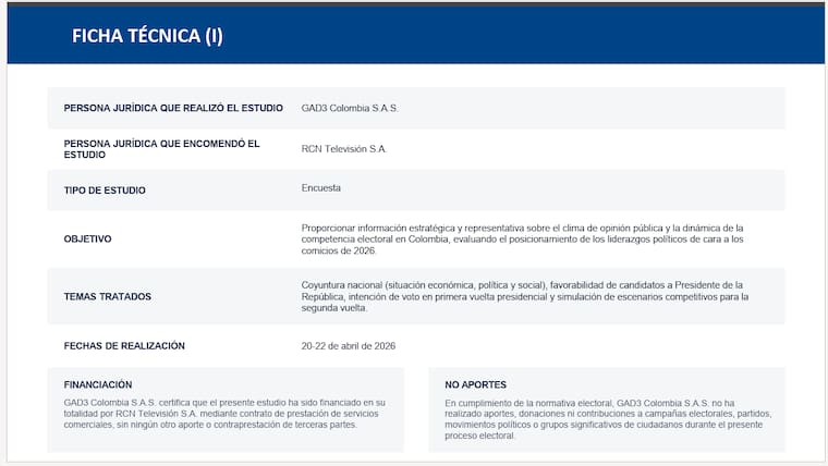 Este lunes se conoció La Gran Encuesta de GAD3 para Noticias RCN, La FM y La República con la intención de voto de los colombianos de cara a la primera vuelta presidencial.