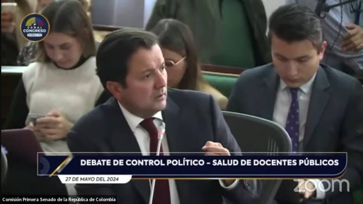 En presencia del ministro de Salud, Guillermo Alfonso Jaramillo y de la ministra de Educación, Aurora Vergara, el parlamentario opositor señaló: 'No soy defensor del modelo de salud que operó para los maestros hace unos años, pero tampoco lo soy del de ahora, que es peor. El sistema actual fracasó', advirtiendo que no se ha podido contratar a los prestadores de servicios ni al personal administrativo, y que hay problemas con las entregas de medicamentos, asignación de citas y prestación de servicios médicos.