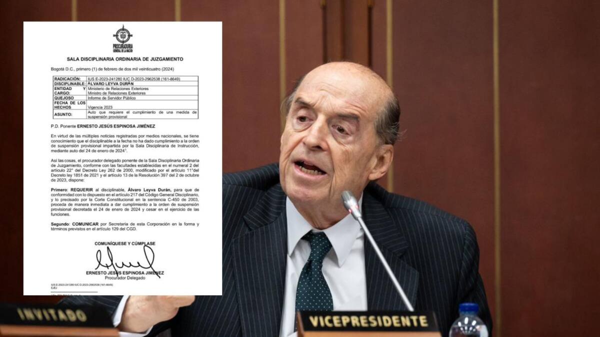 En la respuesta, dirigida al procurador de la Sala Ordinaria de Juzgamiento, Ernesto Espinosa, se leería que Leyva 'no puede separarse del ejercicio de sus funciones sin que exista un acto administrativo que así lo protocolice por parte de su nominador, so pena de verse expuesto a investigaciones por abandono del cargo de cargo e incumplimiento de sus deberes funcionales'.