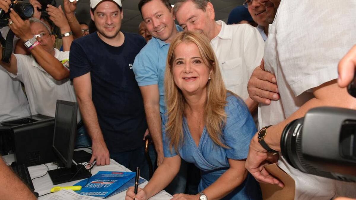 Acompañada del candidato a la Alcaldía de Barranquilla, Jaime Pumarejo; del exsenador Fuad Char y otras personalidades de la política local, la exalcaldesa y exministra oficializó su aspiración al primer cargo del departamento.