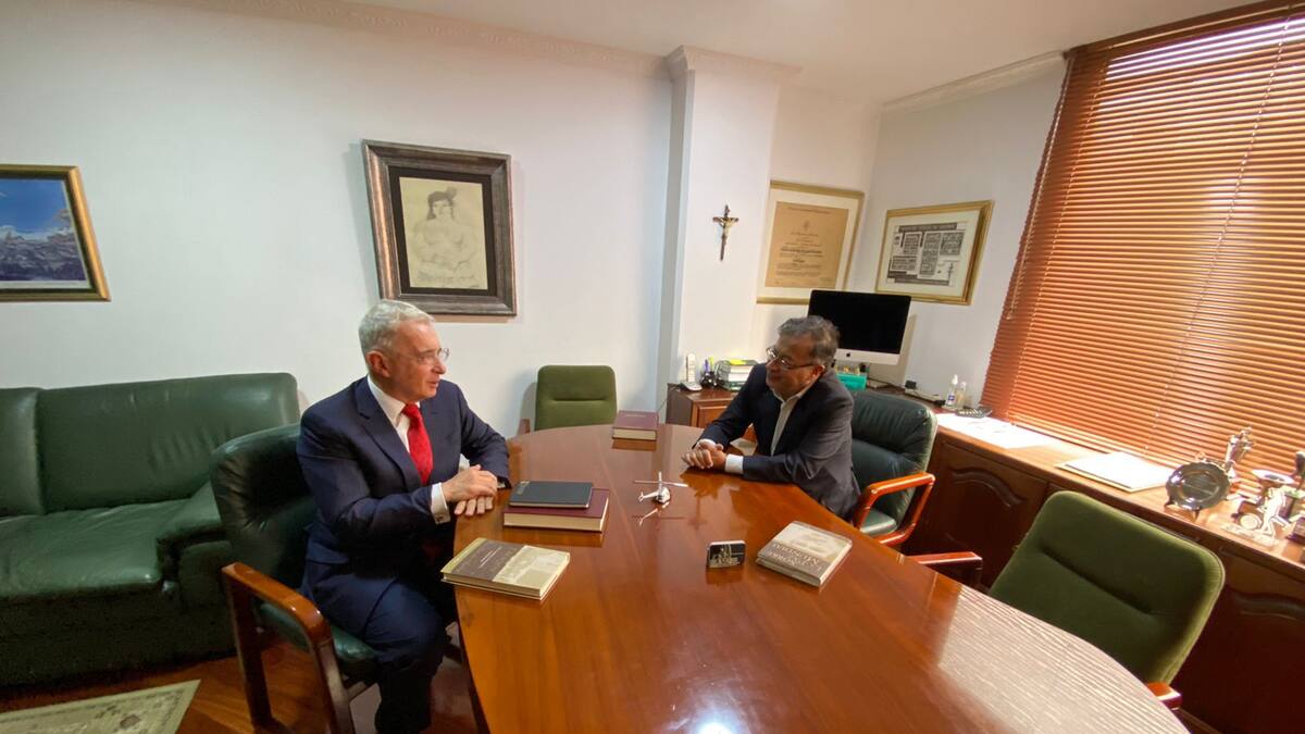 La primera parte de la reunión fue un encuentro a solas entre el presidente electo y el ex mandatario, que duró alrededor de 30 minutos. Después entraron a la oficina Alfonso Prada, quien fue jefe de debate de la campaña presidencial de Petro, y el senador Ciro Ramírez, Alirio Barrera (excandidato presidencial del Centro Democrático), Nubia Stella Martínez (directora del Centro Democrático) y el representante Juan Fernando Espinal.