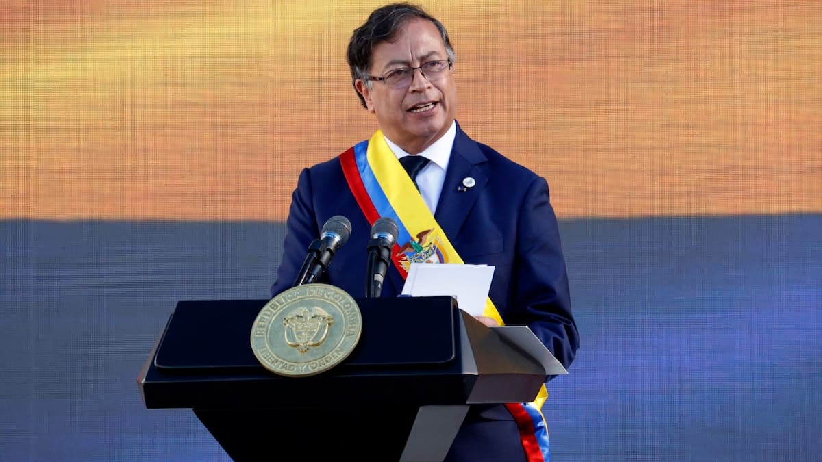 Con la espada de Bolívar de fondo y una multitudinaria manifestación en la Plaza de Bolívar de Bogotá, Gustavo Petro tomó posesión como presidente de la República.
