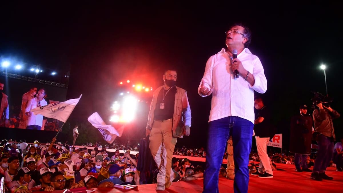 Petro arribó a la Plaza de la Paz a las 6:30 p.m. para dirigirse a sus seguidores: 'nosotros estamos haciendo un pacto con la paz, si lo quieren así con el Jesús que prefiere a los pobres, con el pueblo, eso es el 'Pacto Histórico', un pacto con la historia y con el pueblo de Colombia'.