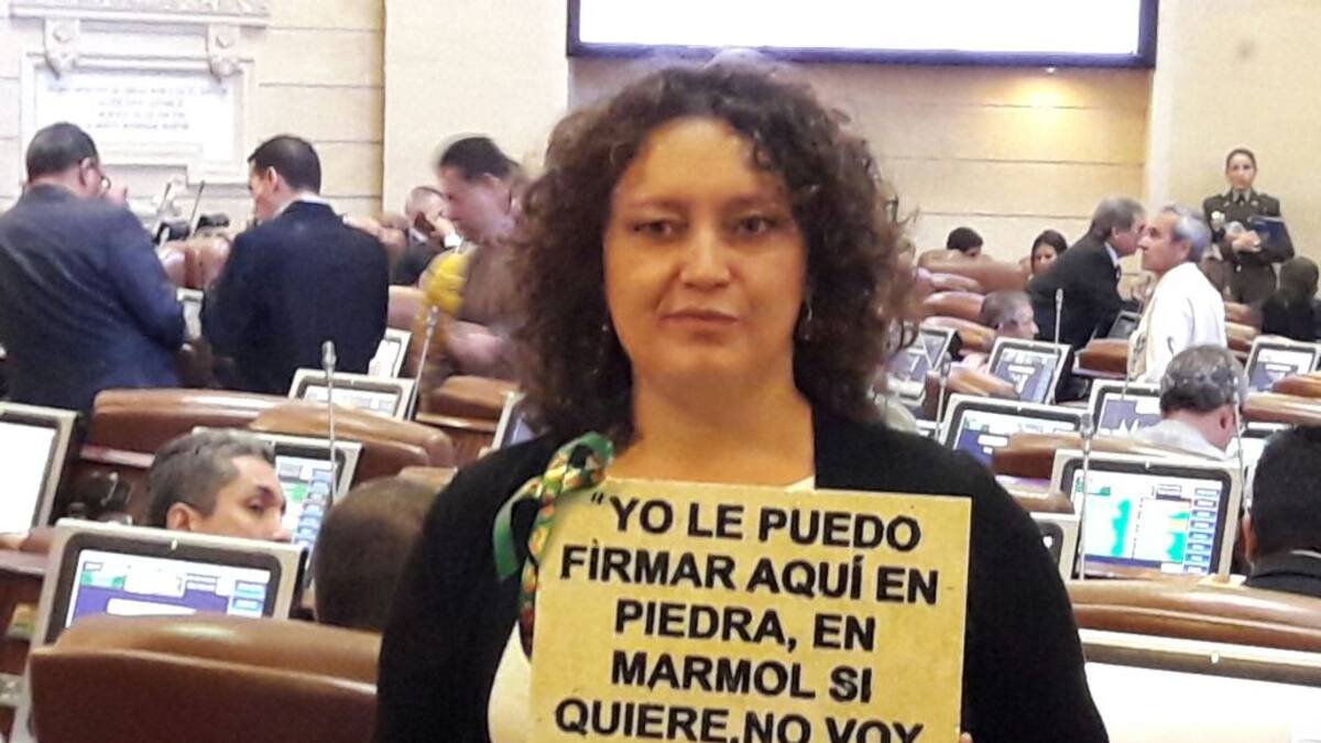 Un momento memorable se vivió en la plenaria de la Cámara de Representantes durante la votación del informe de conciliación de la Reforma Tributaria cuando la representante de la Alianza Verde, Angélica Lozano, entregó una placa de mármol al ministro de Hacienda, Mauricio Cárdenas, recodándole la vieja promesa del Presidente de no subir impuestos.