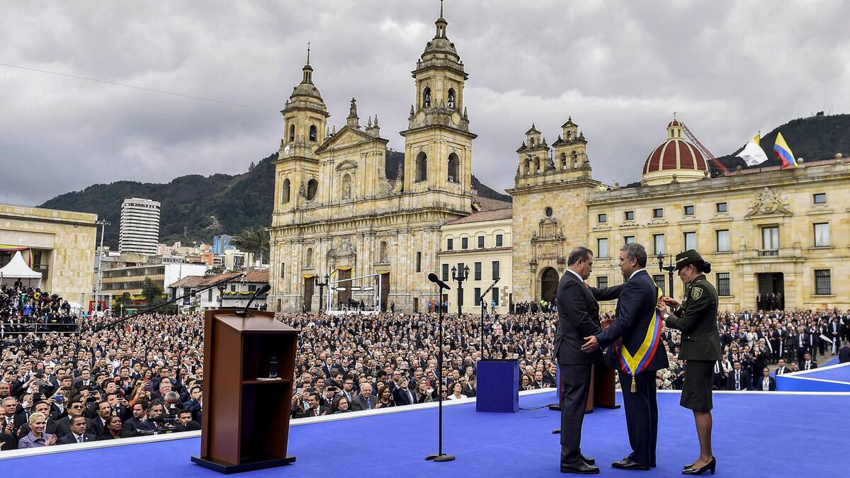 En medio de una tarde que pasó del sol y la música al viento, el frío y la lluvia, se posesionó este martes 7 de agosto, con un mensaje de unión y rechazo a la violencia, el presidente Iván Duque Márquez, quien gobernará los destinos del país desde 2018 hasta 2022.