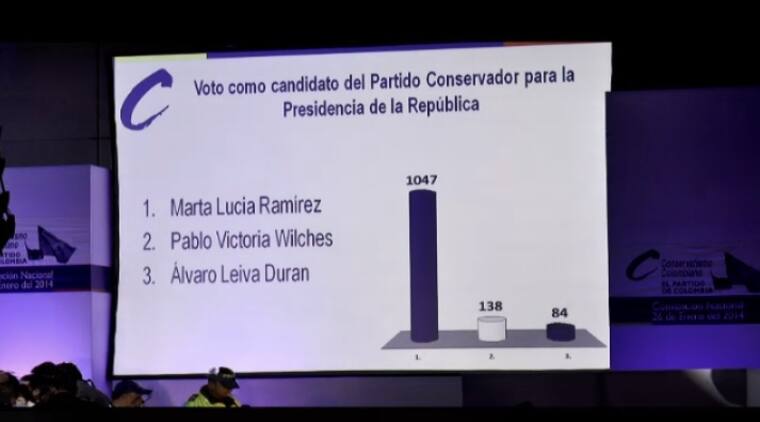 Con una votación arrolladora, Marta Lucía Ramírez se convirtió en la candidata del Partido Conservador a la Presidencia de la República, dejando en firme la posición del Partido Conservador para apoyar un candidato propio y no una alianza con la reelección del presidente Juan Manuel Santos.