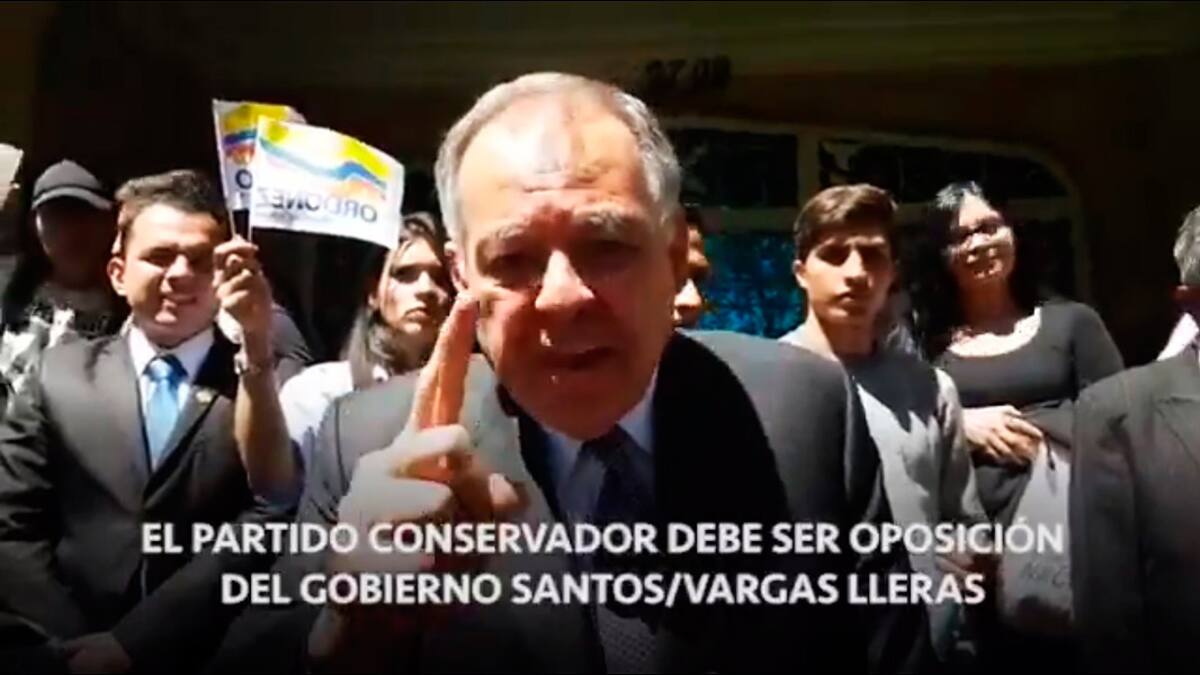En un video subido a su cuenta de Twitter y enfundado en su nueva ropa de precandidato presidencial, el ex procurador general de la Nación Alejandro Ordóñez Maldonado envió un mensaje al Partido Conservador, del cual hace parte, para que se declare en oposición al Gobierno del presidente Juan Manuel Santos y el vicepresidente Germán Vargas Lleras.