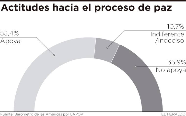 El estudio muestra que el apoyo al proceso frente a la medición del año anterior se mantiene estable, con un 53,4% de los colombianos a favor.