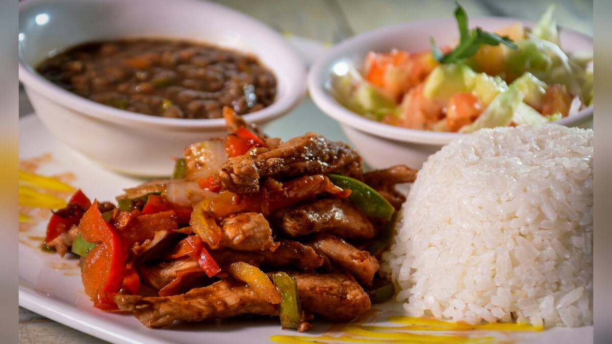 Paso a paso... En una sartén pon el aceite vegetal y los 120 g de lomo de cerdo marinado, deja en el fogón hasta que selle y dore. Luego agrega los vegetales y deja cocinar por unos segundos, después pon la sal y la pimienta al gusto, la salsa soya y la BBQ, revuelve. Más tarde emplata acompañando con granos como las lentejas, arroz blanco y ensalada de tu preferencia. Disfrútalo en familia con un granizado de mandarina.