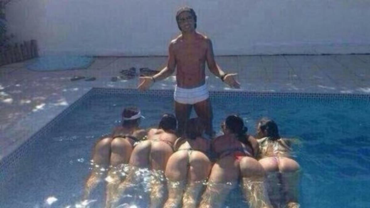 En una piscina y alrededor de cinco mujeres, el astro del fútbol Ronaldinho disfruta de sus vacaciones. La fotografía ha estado en las redes sociales circulando desde su publicación.