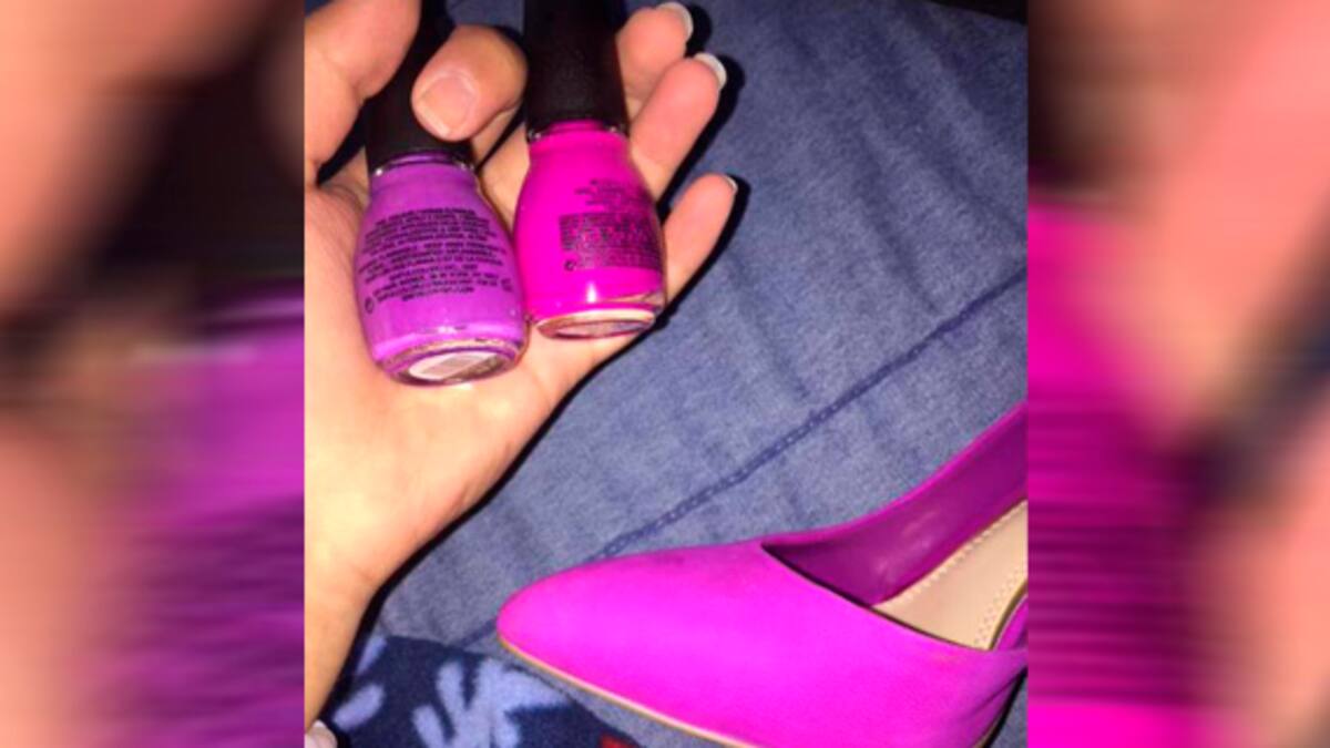 El tuit con la imagen que tiene hablando a muchos muestra una mujer sosteniendo en su mano izquierda dos botellas de pintauñas en dos tonos púrpuras, al lado de un zapato.