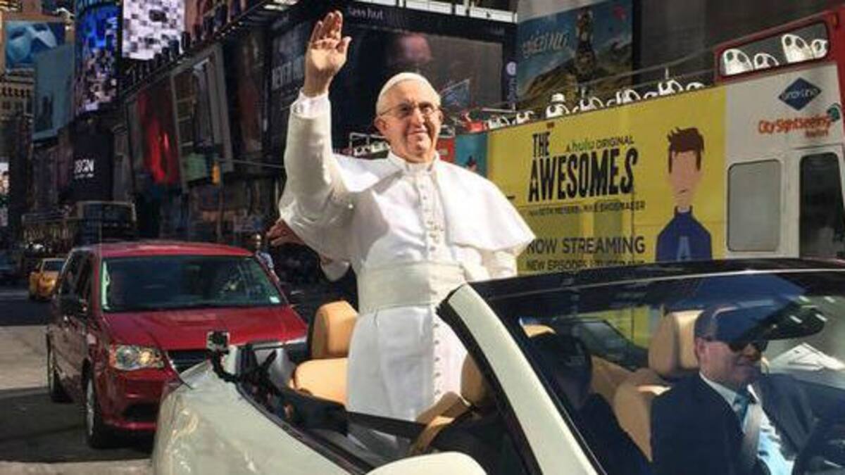 Si hay un lugar donde tiene cabida lo disparatado es Nueva York, donde muchos transeúntes quedaron desconcertados al encontrarse al Papa Francisco I saludando desde un convertible blanco. El carro, que recorrió las principales avenidas de Manhattan, llamó la atención al punto que muchas personas marcaron a la Policía para denunciar que el Papa estaba siendo trasladado sin las adecuadas medidas de seguridad.