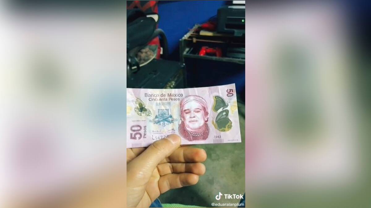 El usuario registrado como @eduaralanplum en Tik Tok denunció haber recibido un billete falso de 50 pesos mexicanos (casi 11.000 pesos colombianos).