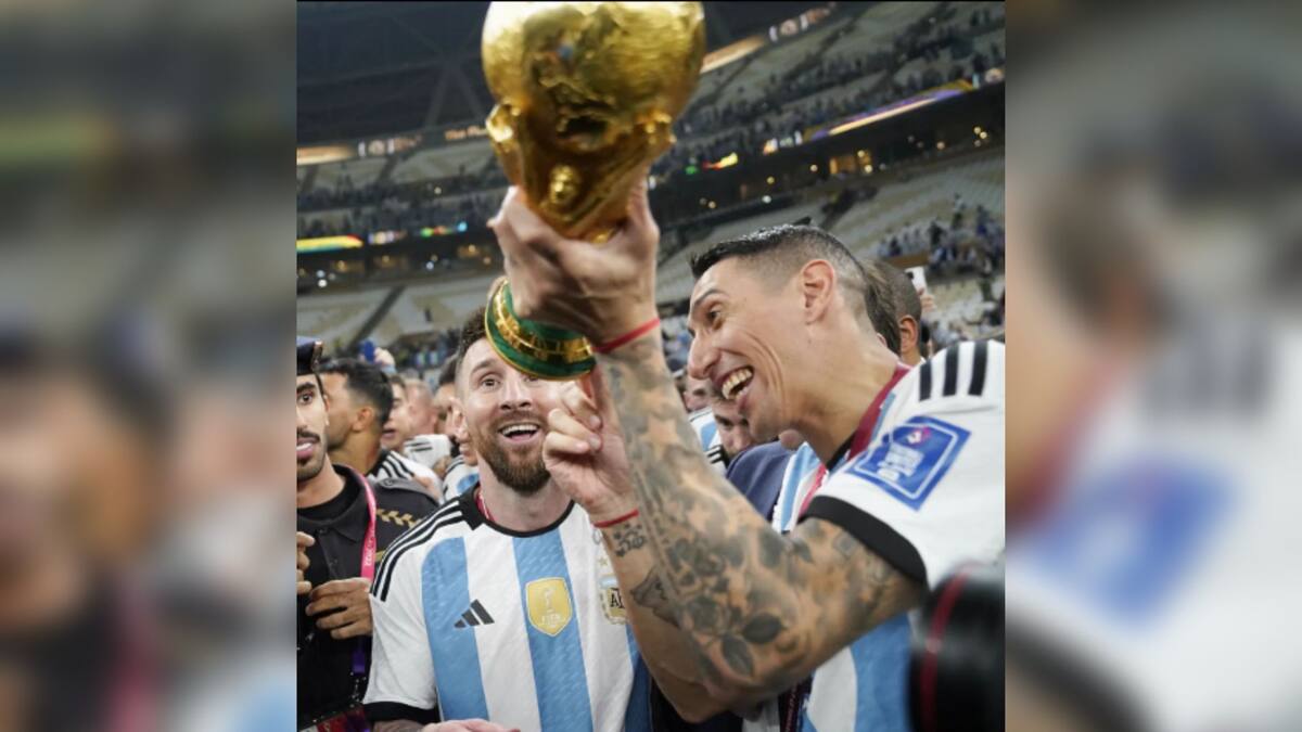 El fotógrafo del Clarín y Olé, Fernando de la Orden, publicó en su cuenta de Instagram una imagen donde se ve a Ángel Di María decirle a Messi que la copa con la que había dado la vuelta, era falsa.