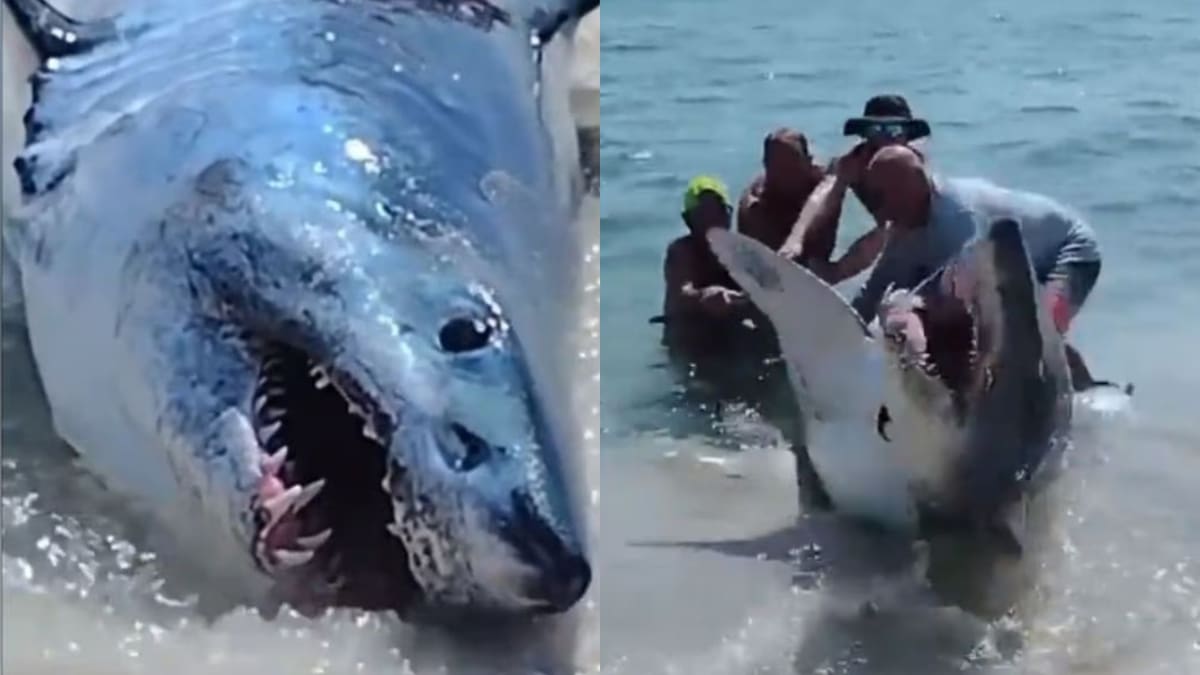 La presencia de un tiburón de gran tamaño ha dejado boquiabiertos a los visitantes de una playa en Florida, Estados Unidos, después de que un video impactante circulara en redes sociales. Según informes de ‘Fox News’, una mujer local capturó las impresionantes imágenes en las que se puede ver al imponente animal varado en la orilla.