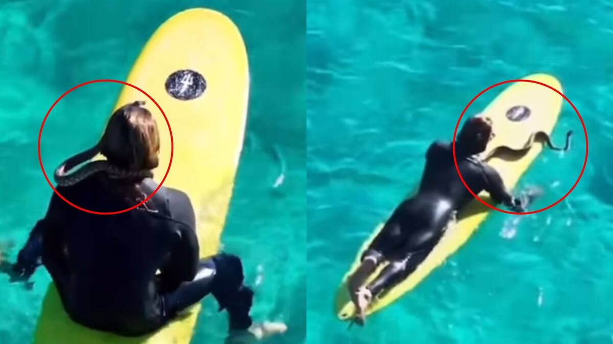 El insólito hecho tuvo lugar en la ciudad de Gold Coast, donde Fiuza fue captado en video practicando el surfing con su inusual mascota, una serpiente pitón de la especie morelia breldi, a quien cariñosamente llamó ‘Shiva’.
