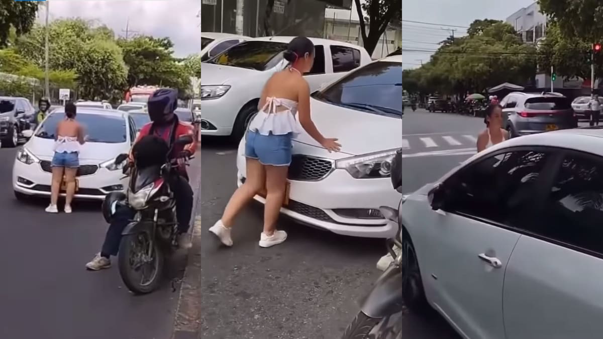 La confrontación continúa mientras el vehículo avanza a pesar de los esfuerzos de la mujer por detenerlo. En un intento de preservar su privacidad, el conductor sube las ventanas polarizadas, ocultando su rostro y el de su acompañante.