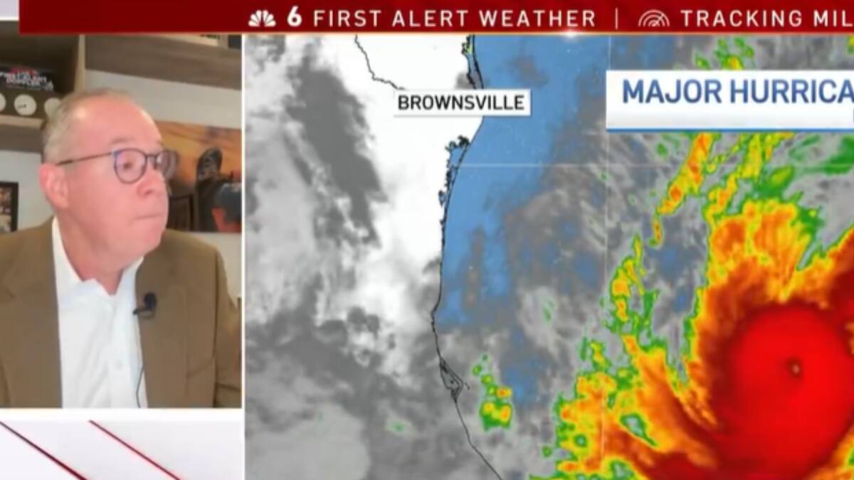 Explicó que su fuerza se debe al cambio climático. “Me disculpo, esto es simplemente horroroso. Los vientos máximos sostenidos son de 260 km/h. Y sigue ganando fuerza en el Golfo de México, donde se pueden imaginar los vientos. Las aguas están increíblemente calientes, calientes a nivel récord. ¿Saben qué lo está impulsando? No necesito decírselos: el calentamiento global”.
