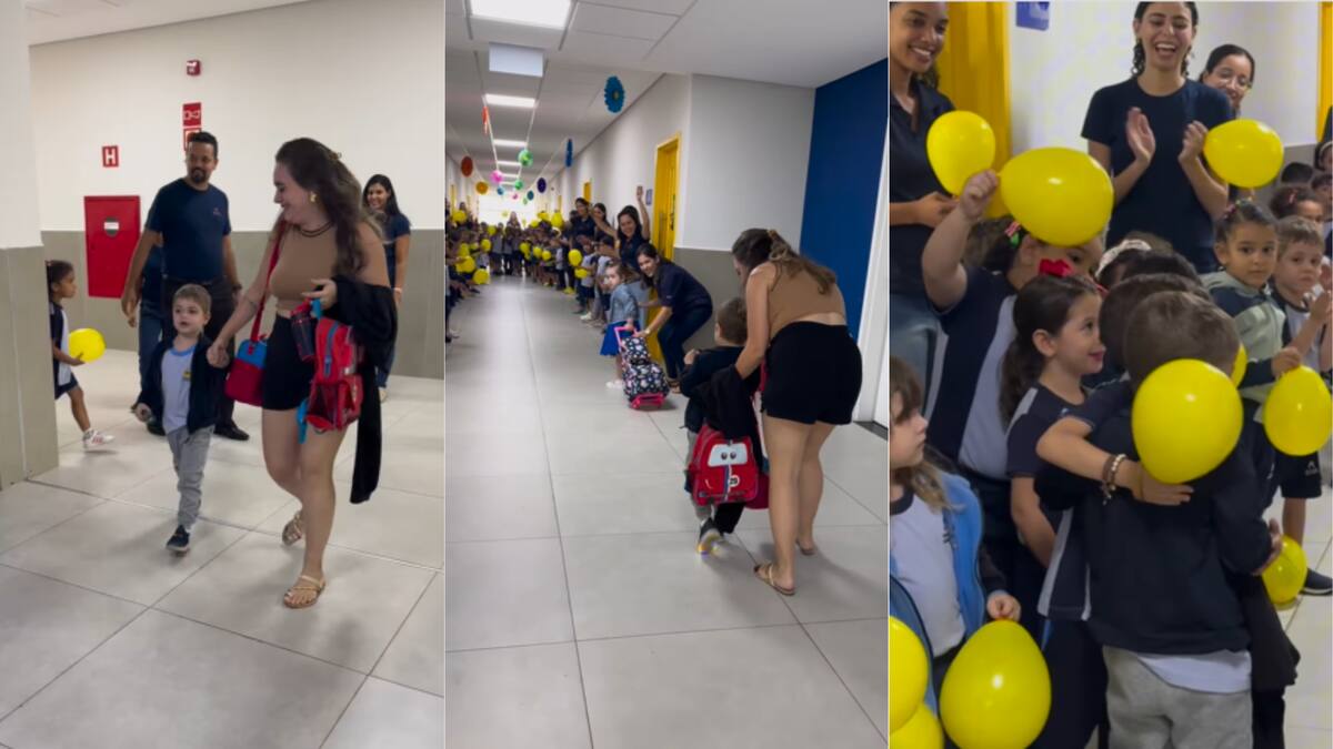 Sus compañeros de clase lo esperaban formando un pasillo de honor adornado con globos amarillos. Los aplausos y las sonrisas llenaron el ambiente, mientras el pequeño, inicialmente tímido, se dejaba envolver por la emoción del momento.