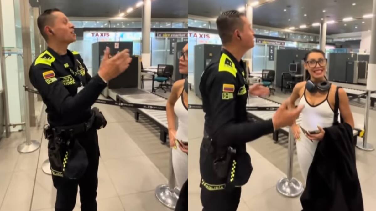 La cantante de vallenato Ana del Castillo se vio sorprendida con una serenata que le dedicó un patrullero de la Policía en las instalaciones del Aeropuerto El Dorado.