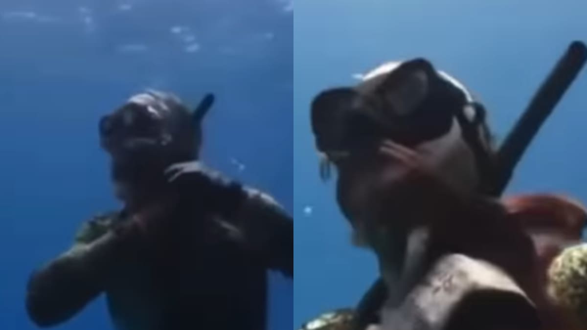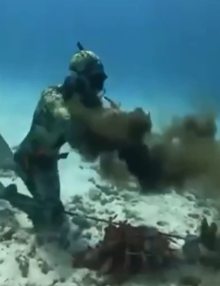 El video que se hizo viral en redes sociales muestra a un buzo que está nadando a unos 10 metros de profundidad, en las costas del Caribe, empezó a remover unas rocas en donde estaba un pulpo.