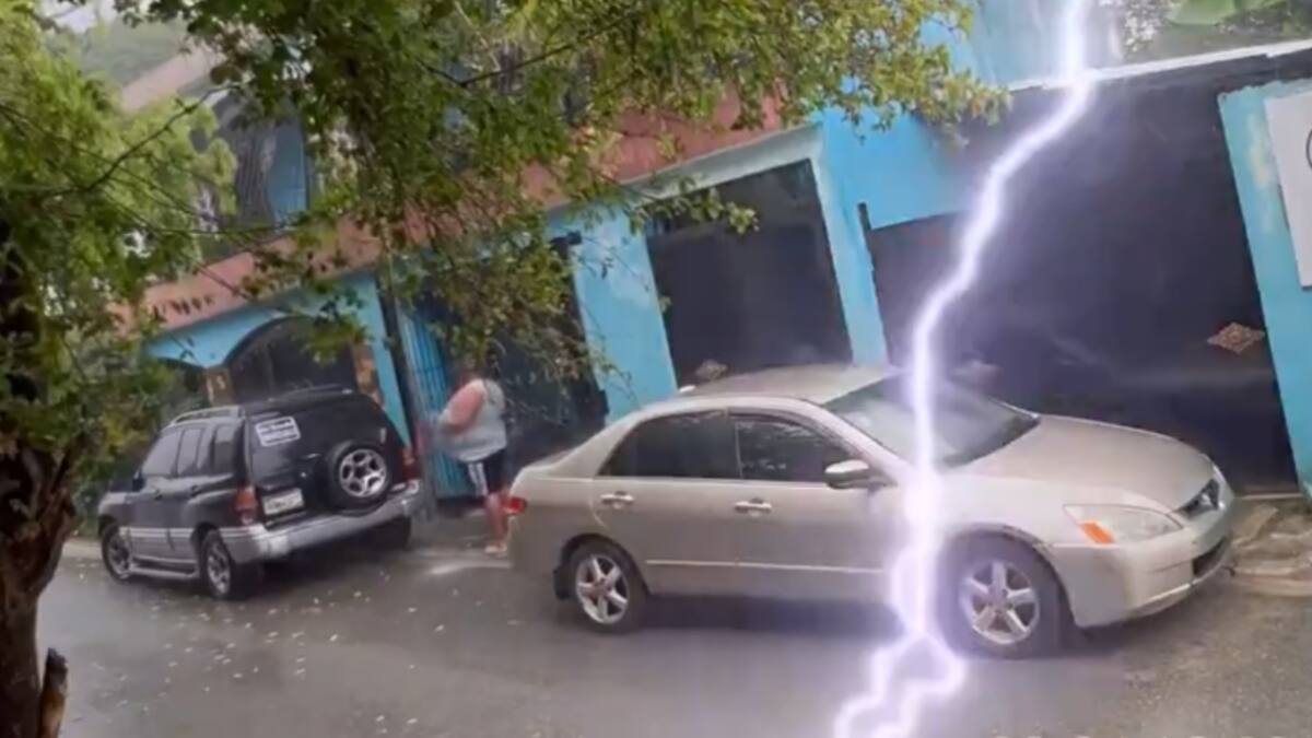 Un hombre que disfrutaba con entusiasmo de la lluvia en plena calle terminó recibiendo una descarga eléctrica por cuenta de un rayo que cayó a pocos metros. El momento quedó captado en un video que se ha vuelto viral en redes sociales, sorprendiendo a miles de internautas.