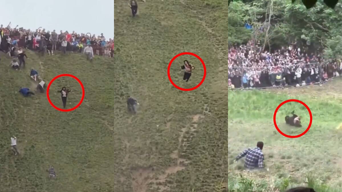 🇬🇧 | Un hombre salió volando ladera abajo ante miles de personas en la tradicional carrera del queso en Cooper’s Hill, Reino Unido. El evento dejó al menos dos heridos y no se conoce el estado del participante del video. pic.twitter.com/z25LzLvBZu