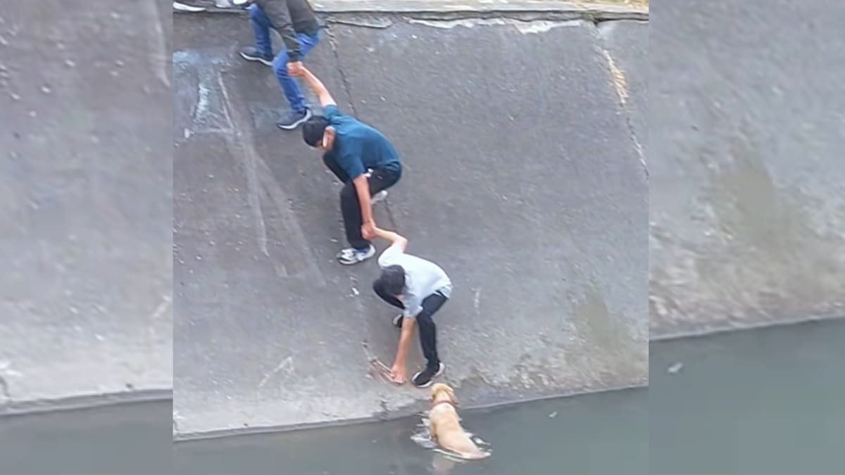 En una muestra de trabajo en equipo, formaron una cadena humana, tomándose de las manos mientras otros vecinos los sostenían desde la parte superior. Finalmente, lograron agarrar al animal por el collar y sacarlo a salvo.