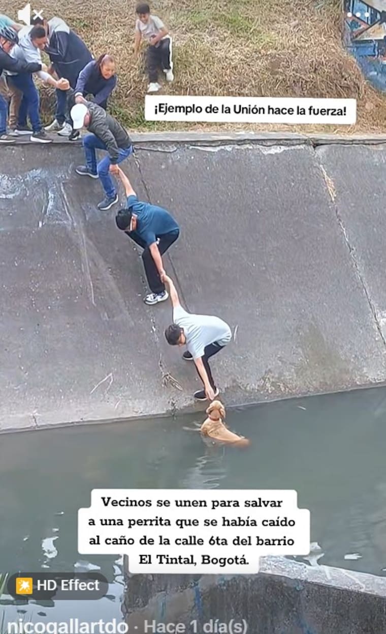 El hecho fue compartido por el usuario de TikTok @nicogallartdo, quien grabó el momento en que varios vecinos se organizaron para salvar al animal que había caído dentro de un caño ubicado en la calle 6ta.