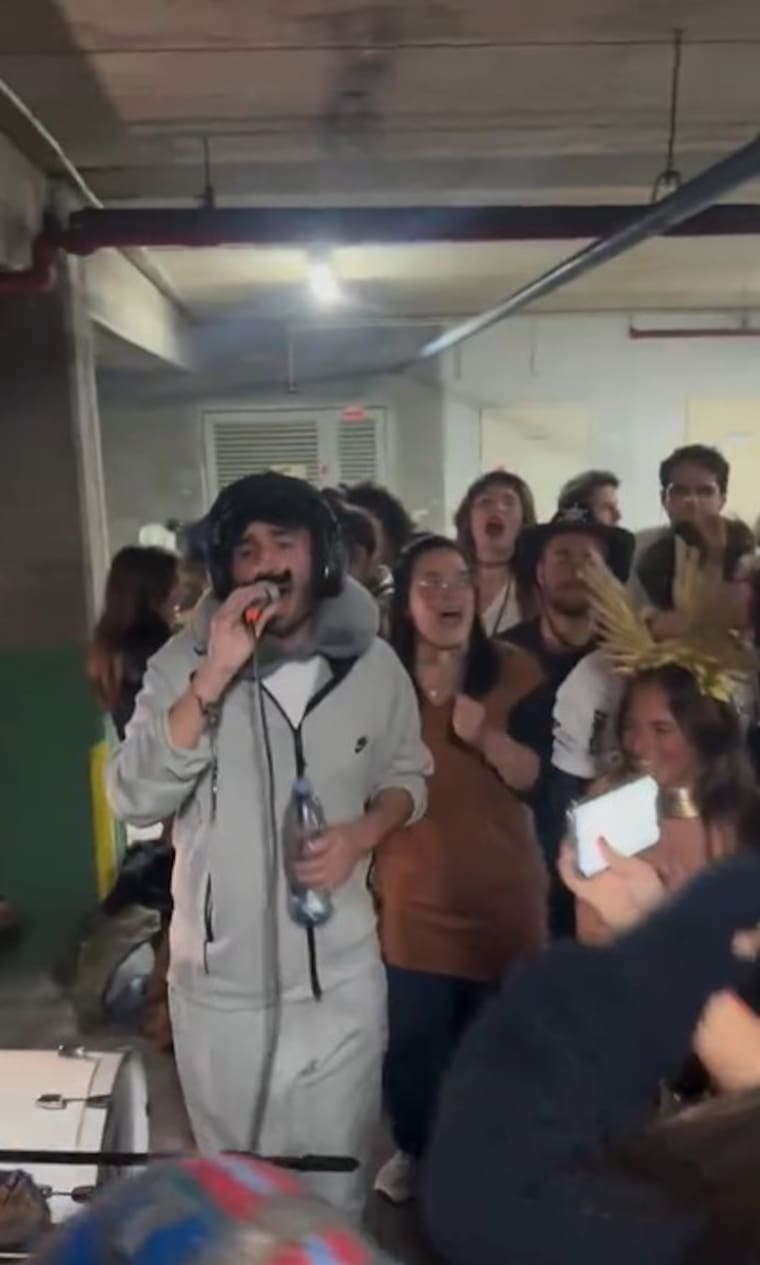 El video fue grabado con un celular y muestran a varias personas reunidas bajo tierra mientras suenan alertas en la ciudad. Estaban alegres y hasta un joven se ve con un atuendo del mandatario venezolano Nicolás Maduro, cuando fue llevado a Estados Unidos.