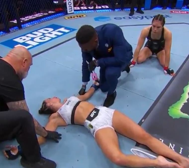 Con el paso de los minutos, la peleadora logró reincorporarse con ayuda, lo que trajo algo de tranquilidad tanto a su equipo como a los espectadores.