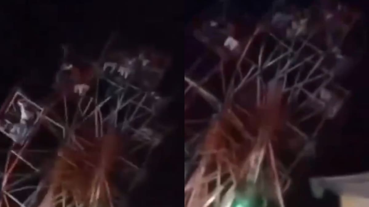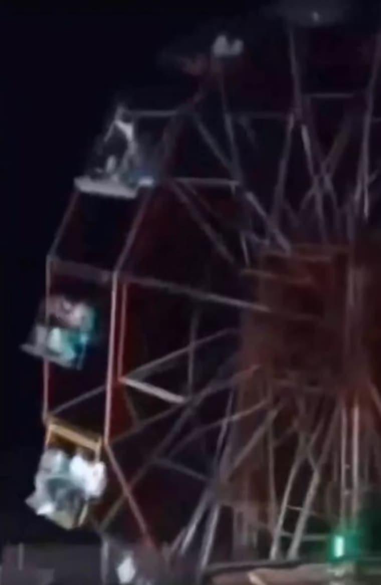En el clip audiovisual se ve cuando esta estructura como rueda de la fortuna perdió la estabilidad y cayó. Todo esto pasó con decenas de personas montadas en la atracción.